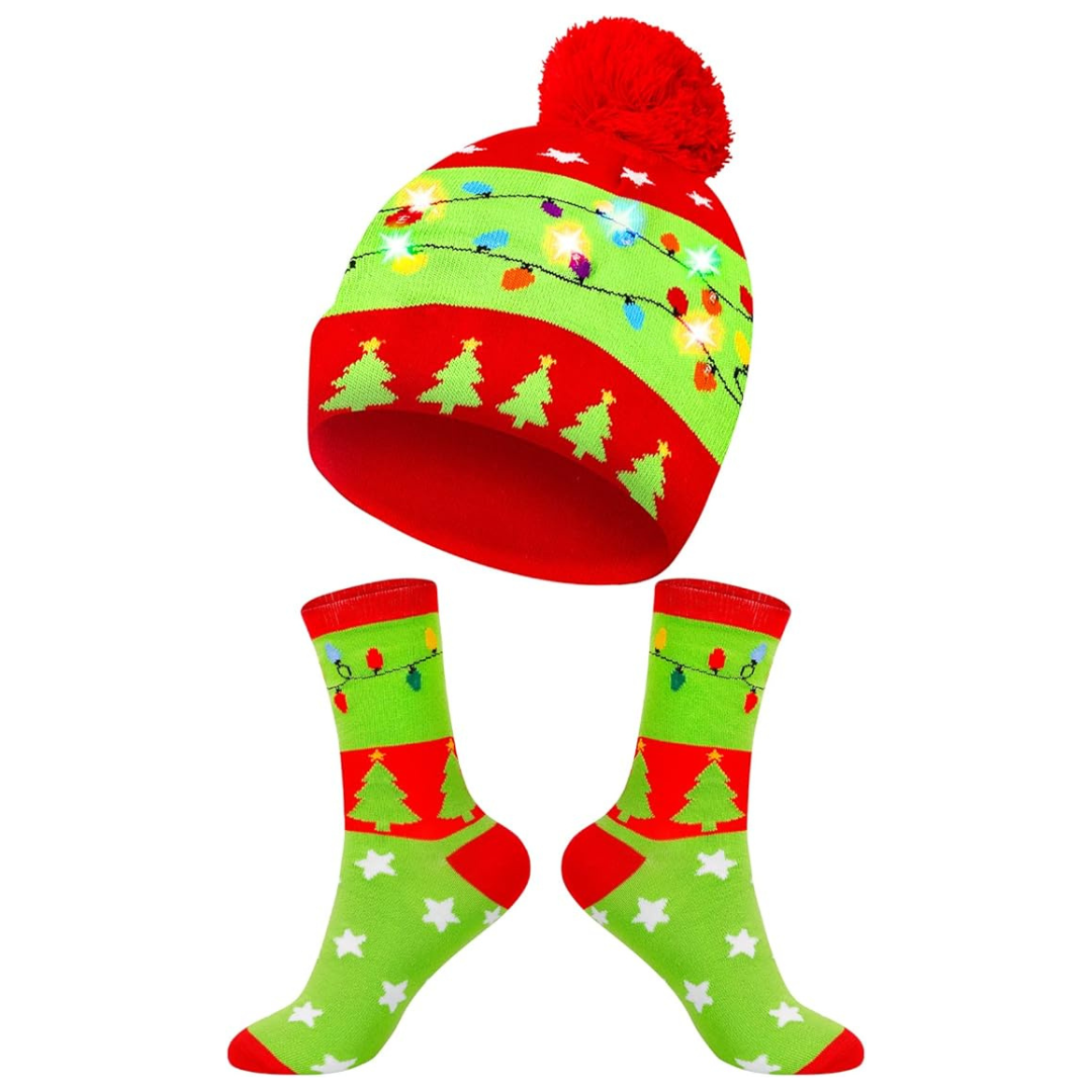 Christmas GlowWear Beanie Set | LED Lighting, Soft Knitting Material and Matching Socks